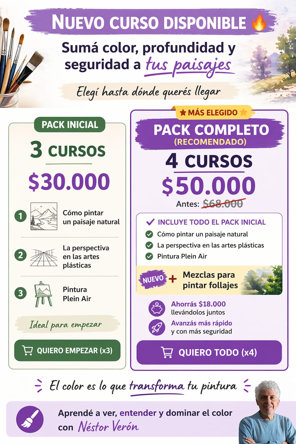 Néstor pinta un paisaje paso a paso con óleo y pincel, para que aprendas recursos prácticos, mejores tu técnica y sigas creciendo como artista.